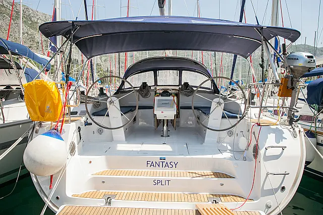 Bimini , Sprayhood , Outboard engine , Cockpit speakers , Electric toilet , Heating , Solar Panels , Cockpit cushions