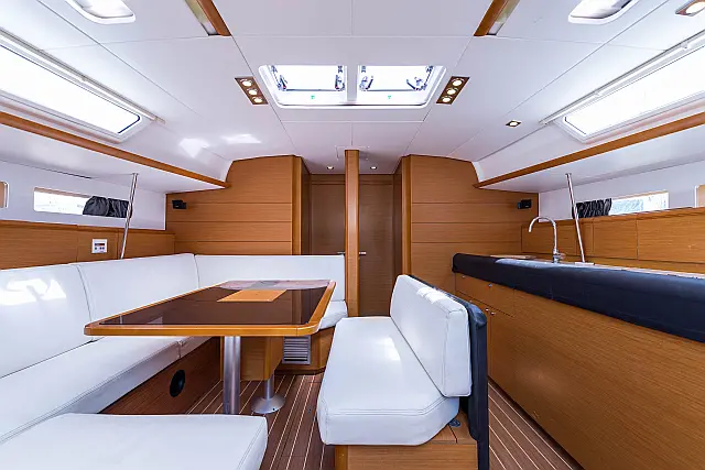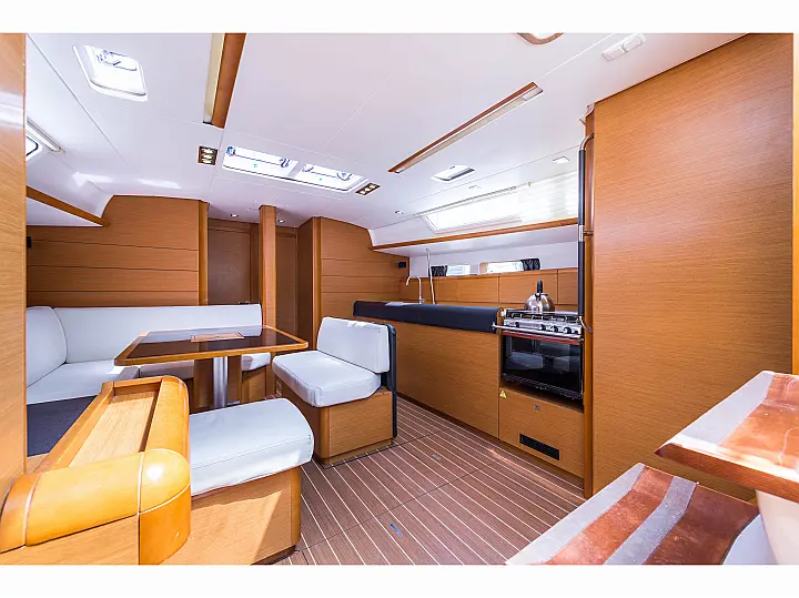 Air condition , Convertible table , Holding tank , Bimini , Sprayhood , Dinghy , Cockpit speakers , Electric toilet , Solar Panels , Cockpit cushions , Teak Cockpit