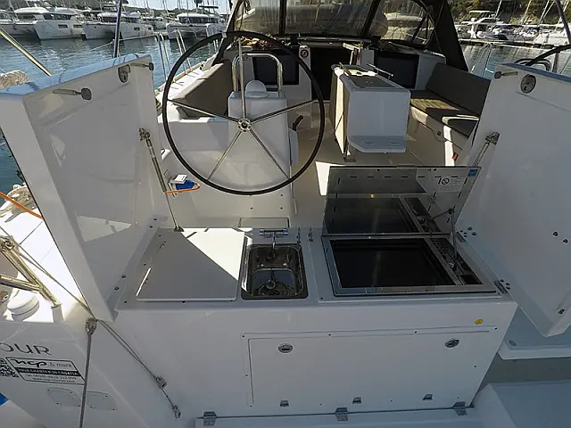 Heating , Barbecue grill in cockpit , Refrigerator , Cockpit cushions , Sprayhood , Outboard engine , Dinghy , Wi-Fi & Internet