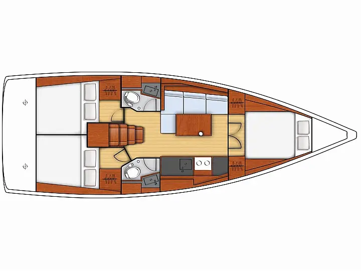 Bimini , Sprayhood , Outboard engine , Electric toilet , Solar Panels , Cockpit cushions