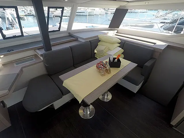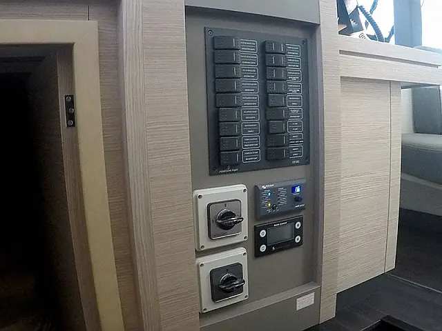 Generator , Heating , Air condition , Refrigerator , Barbecue grill in cockpit , Cockpit cushions , Outboard engine , Dinghy , Electric winches , Wi-Fi & Internet