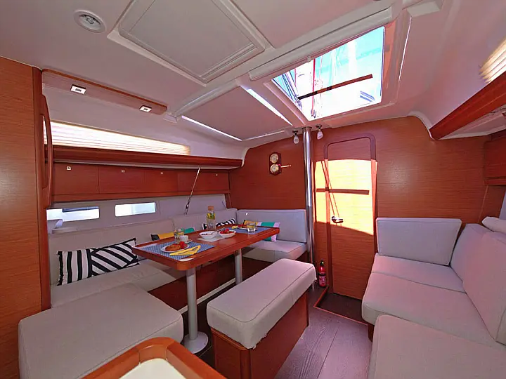 Bimini , Sprayhood , Outboard engine , Refrigerator , Teak Cockpit , Electric toilet , Heating , Solar Panels , Cockpit cushions