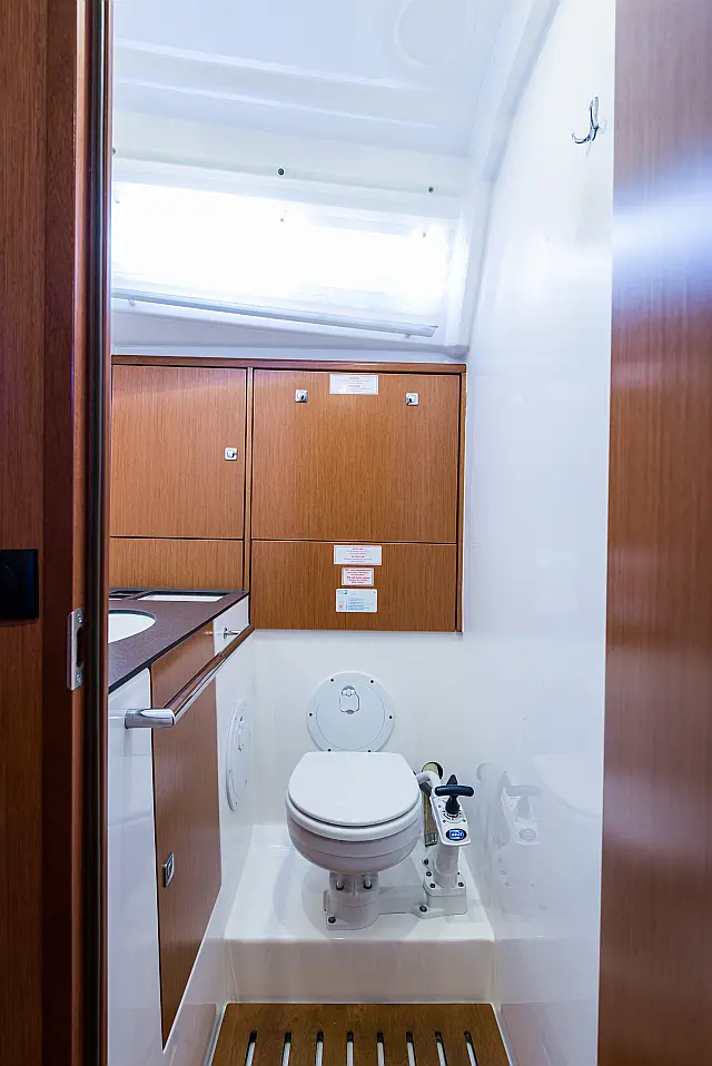 Air condition , Holding tank , Bimini , Sprayhood , Dinghy , Cockpit speakers , Electric winches , Electric toilet , Solar Panels , Teak Cockpit