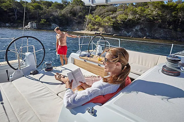Bimini , Sprayhood , Teak Cockpit , Electric winches , Dinghy , Air condition , Cockpit speakers