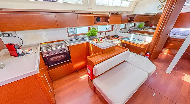 Ice maker , Refrigerator , Bimini , Sprayhood , Outboard engine , Electric winches , Coffee maker , Generator , Electric toilet , Teak Cockpit , Air condition , Heating , Cockpit cushions