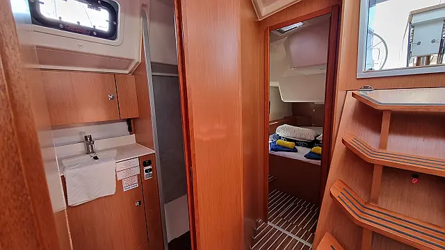 Bimini , Sprayhood , Outboard engine , Refrigerator , Teak Cockpit , Electric toilet , Heating , Solar Panels , Cockpit cushions