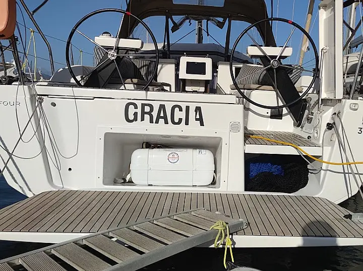 Refrigerator , Bimini , Cockpit cushions , Solar Panels , Inverter , Dinghy , Outboard engine , Heating