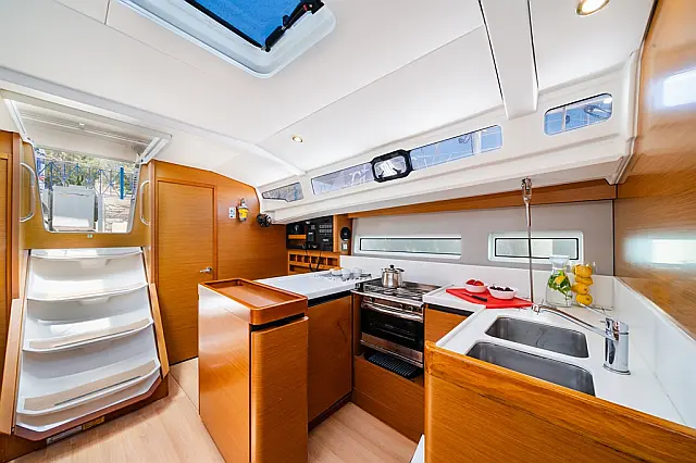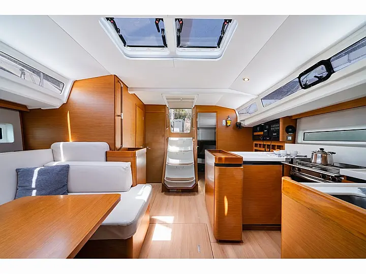Dinghy , Outboard engine , Bimini , Cockpit cushions , Sprayhood , Teak Cockpit , Convertible table , Refrigerator