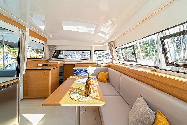 Cockpit cushions , Bimini , Wi-Fi & Internet , Holding tank , Dinghy , Outboard engine , Electric toilet , Cockpit speakers , Solar Panels , Refrigerator