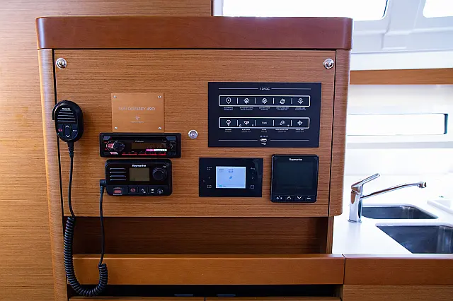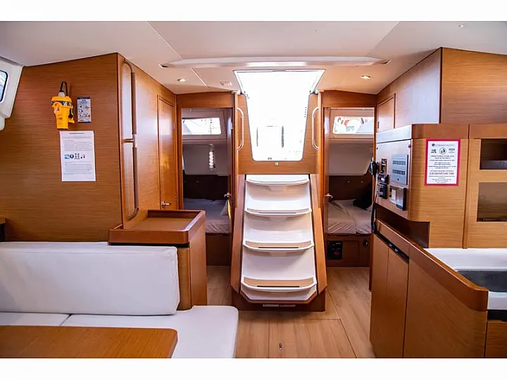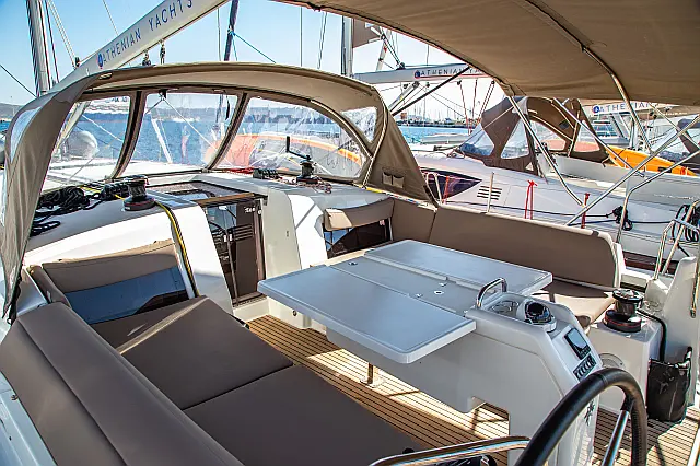 Dinghy , Outboard engine , Bimini , Cockpit cushions , Sprayhood , Teak Cockpit , Convertible table , Refrigerator