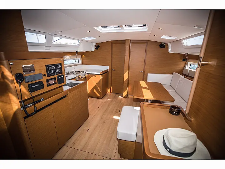 Dinghy , Outboard engine , Bimini , Cockpit cushions , Sprayhood , Teak Cockpit , Solar Panels , Air condition , Convertible table , Refrigerator , Generator