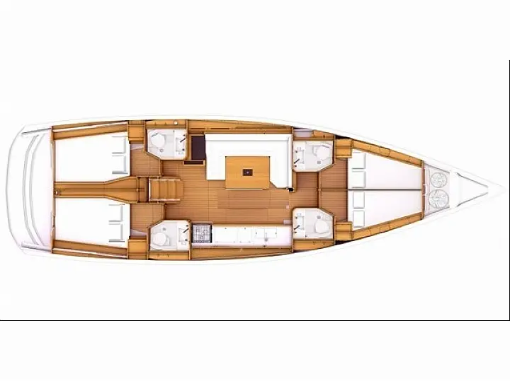 Dinghy , Outboard engine , Bimini , Cockpit cushions , Sprayhood , Solar Panels , Convertible table , Refrigerator