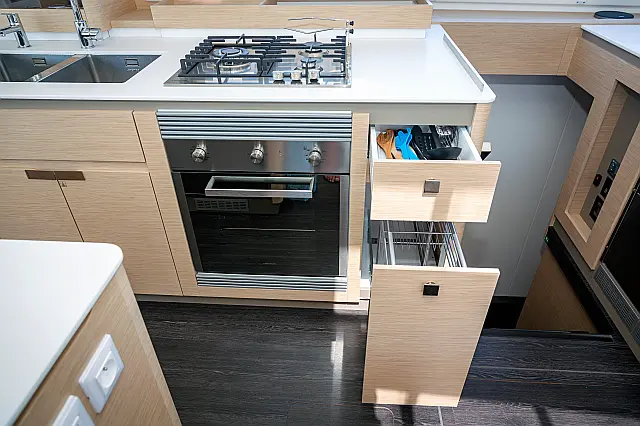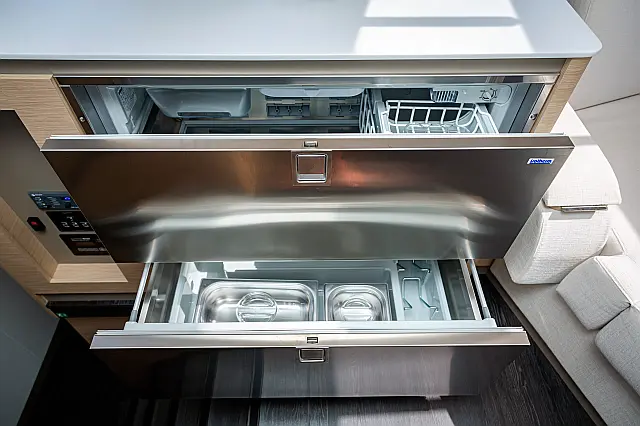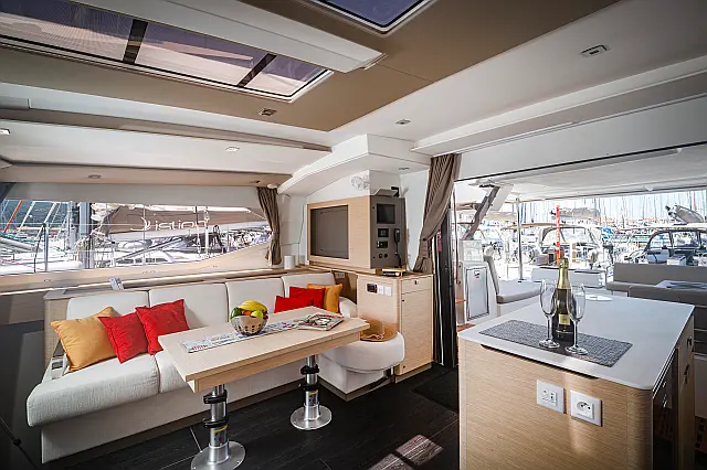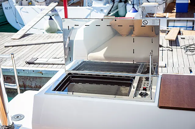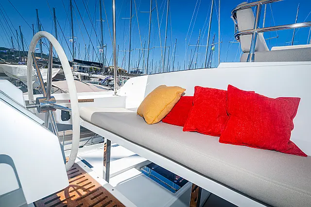 Dinghy , Outboard engine , Barbecue grill in cockpit , Cockpit cushions , Coffee maker , Flybridge , Ice maker , Solar Panels , Water maker , Electric winches , Electric toilet , Air condition , Bimini , Cockpit speakers , Refrigerator , Generator , Teak Cockpit , Inverter