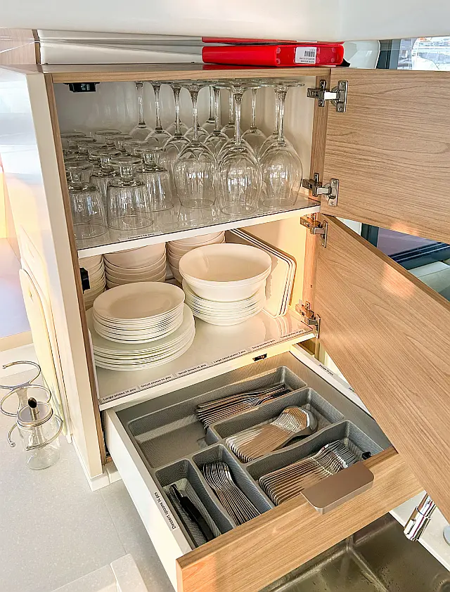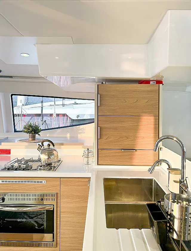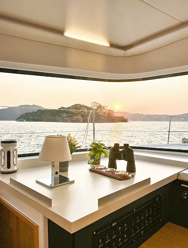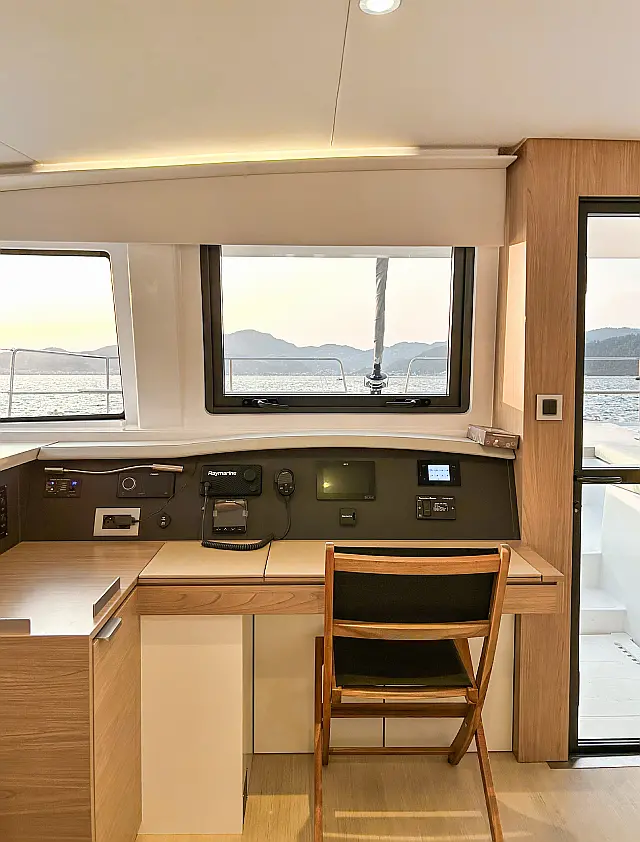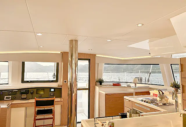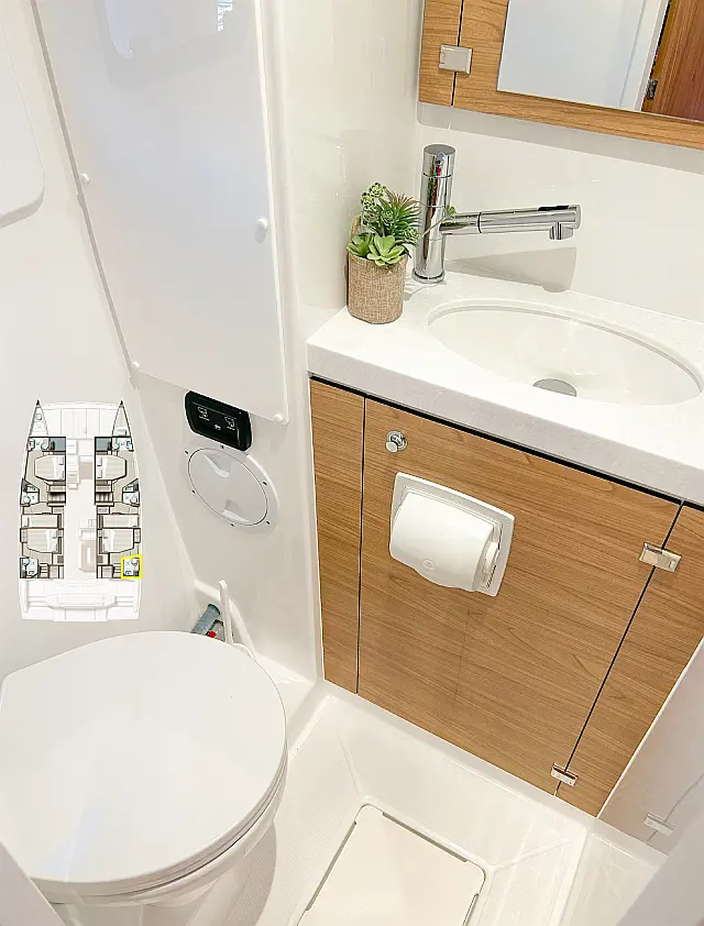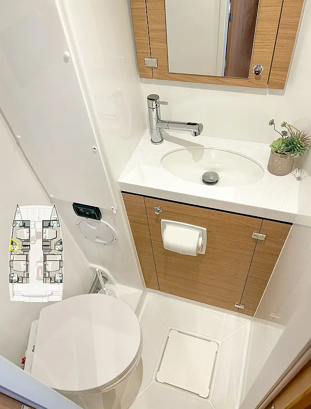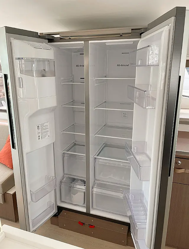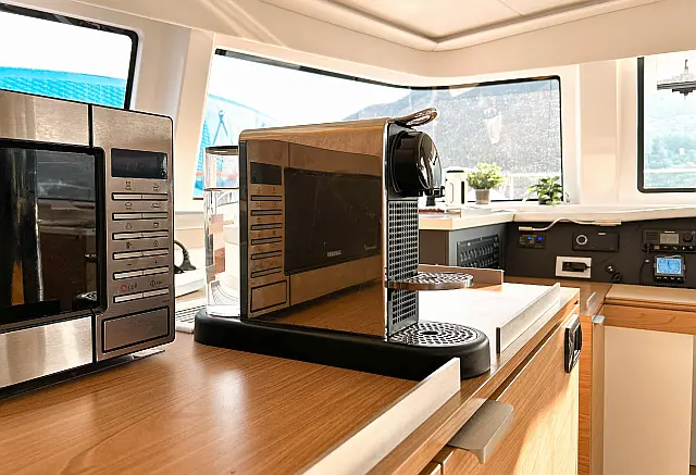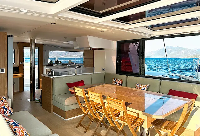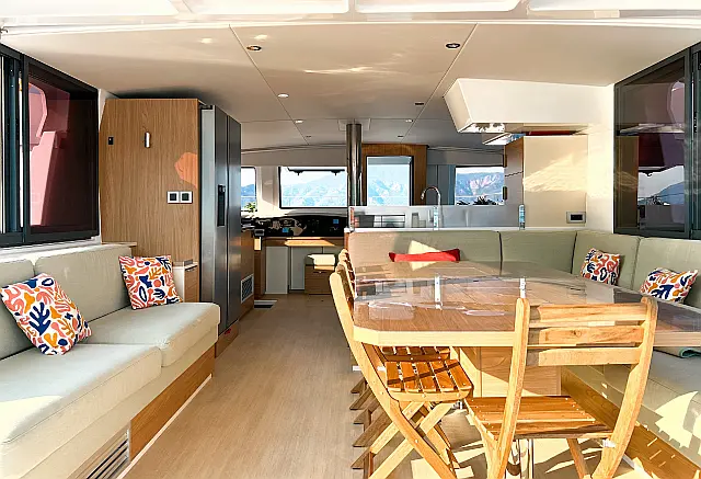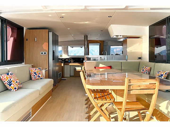 Generator , Dinghy , Outboard engine , Electric winches , Solar Panels , Inverter , Bimini , Cockpit cushions , Coffee maker , Air condition , Refrigerator , Barbecue grill in cockpit , Water maker , Heating , Ice maker , Electric toilet