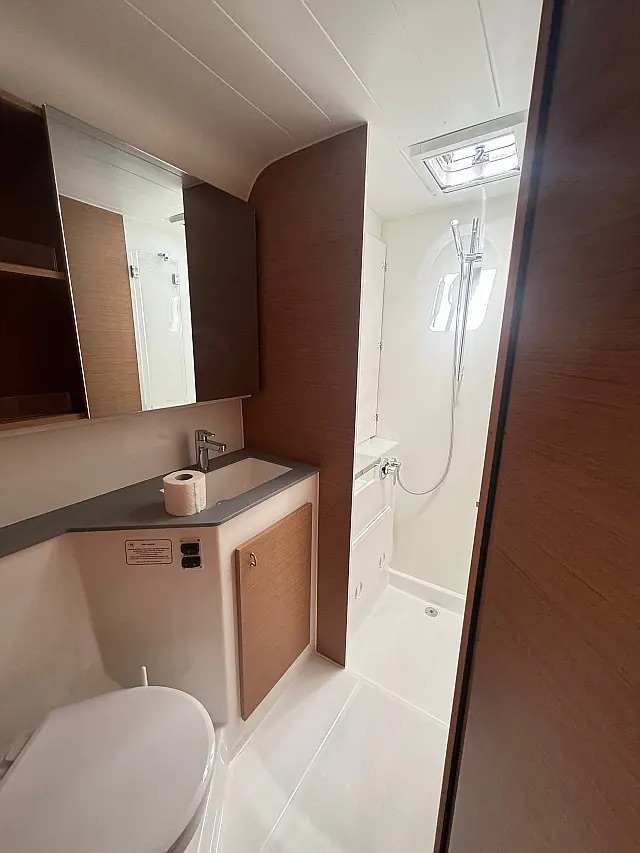 Air condition , Bimini , Cockpit cushions , Cockpit speakers , Dinghy , Refrigerator , Electric toilet , Generator , Heating , Holding tank , Inverter , Outboard engine , Solar Panels , Wi-Fi & Internet , Coffee maker