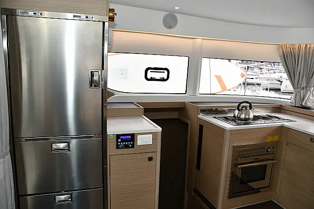 Refrigerator , Coffee maker , Ice maker , Bimini , Solar Panels , Teak deck , Inverter , Air condition