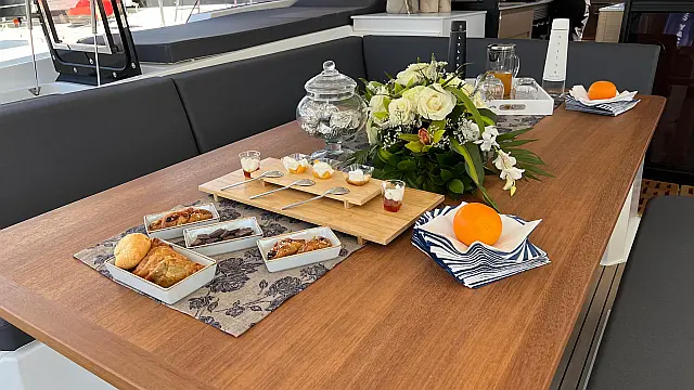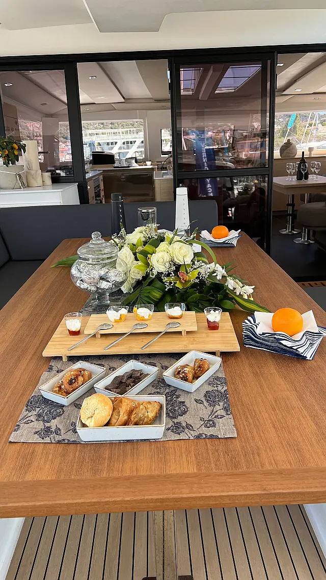 Air condition , Generator , Inverter , Water maker , Solar Panels , Bimini , Cockpit cushions , Dinghy , Refrigerator , Outboard engine , Sprayhood , Electric winches , Coffee maker