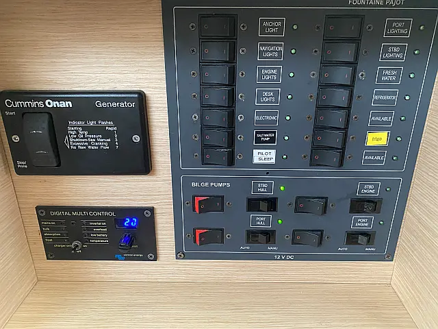 Coffee maker , Wi-Fi & Internet , Inverter , Dinghy , Air condition , Generator , Cockpit cushions , Solar Panels , Cockpit speakers , Bimini