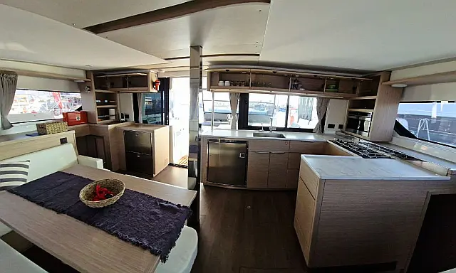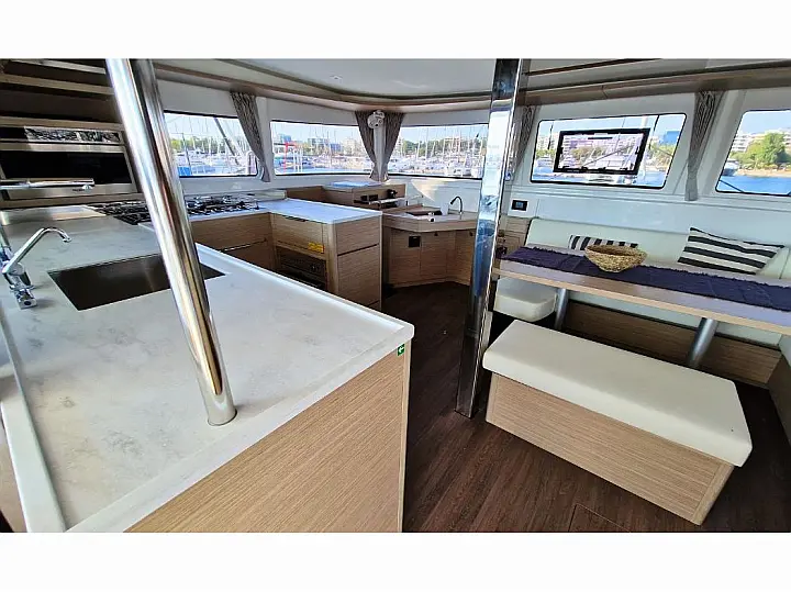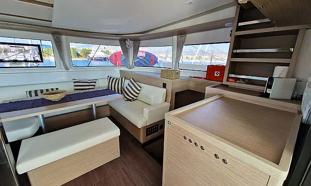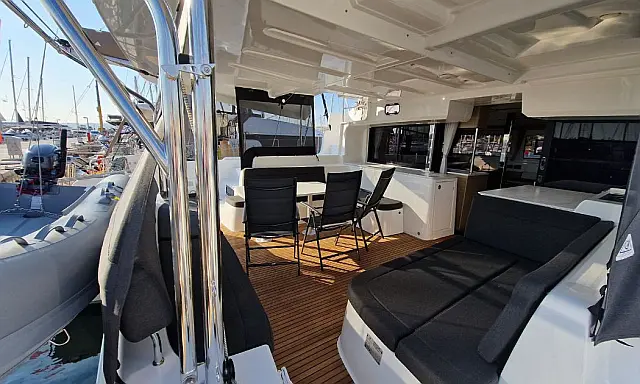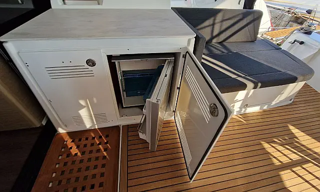 Dinghy , Outboard engine , Bimini , Cockpit cushions , Teak Cockpit , Electric winches , Air condition , Convertible table , Refrigerator , Electric toilet , Coffee maker , Generator , Hydraulic gangway , Inverter , Water maker