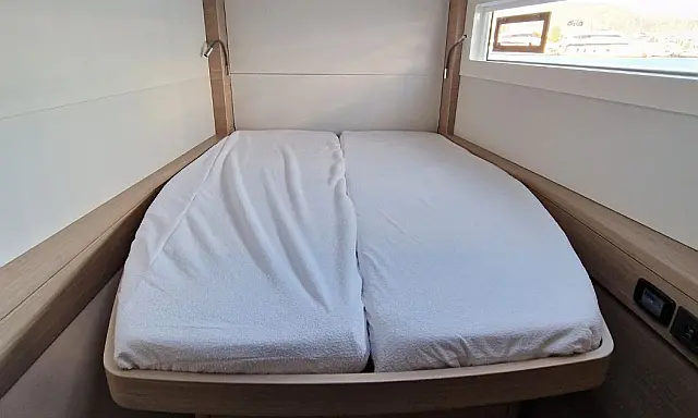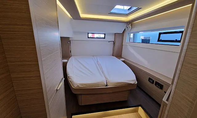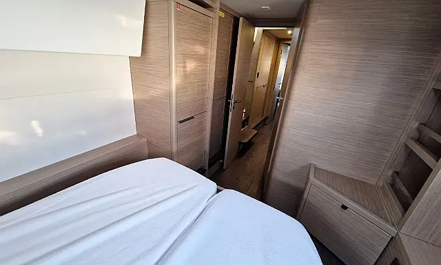 | Cabins: | 4 (4 Dbl cabs + 1 berth in each bow comp) |